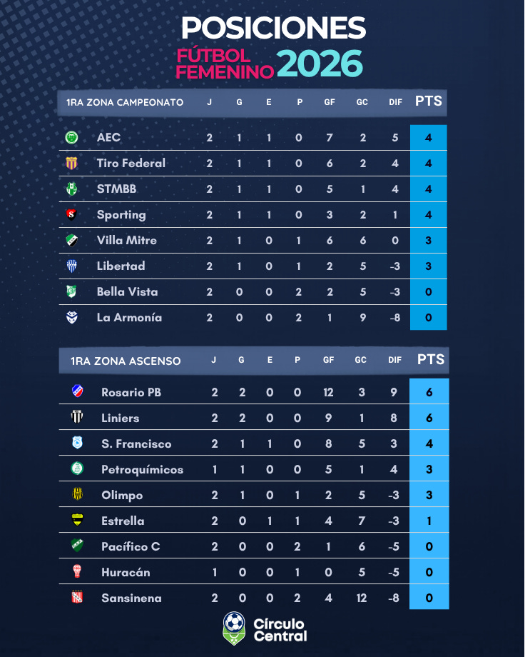 Municipales dio el golpe y se subió a la cima con AEC, Tiro Federal y Sporting, todos con 4 pts. En la "B", Rosario y Liniers a paso firme y goleando, están en la cima en dos partidos disputados.